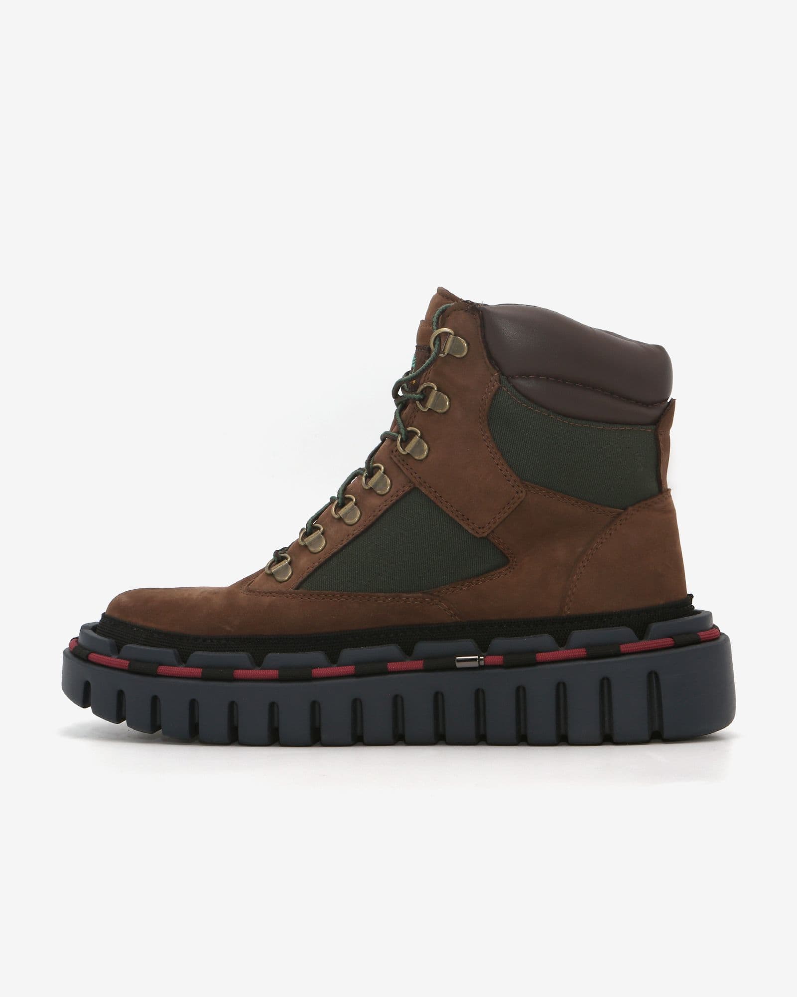 6" FIELD BOOTS KHOLAB 1/1 Handcrafted KHOLAB Size: 11 85/100 Upper Condition · Suede Leather Upper · Full grain leather detailing · Rust Proof D-Ring Eyelets · Padded Collar · Signature KHOLA Sole (Blue) · Signature KHOLA Cord (Maroon) Color: Brown/Dark Olive Upper: Nylon/Suede Leather/Brass Sole: EVA Assembled in Los Angeles
