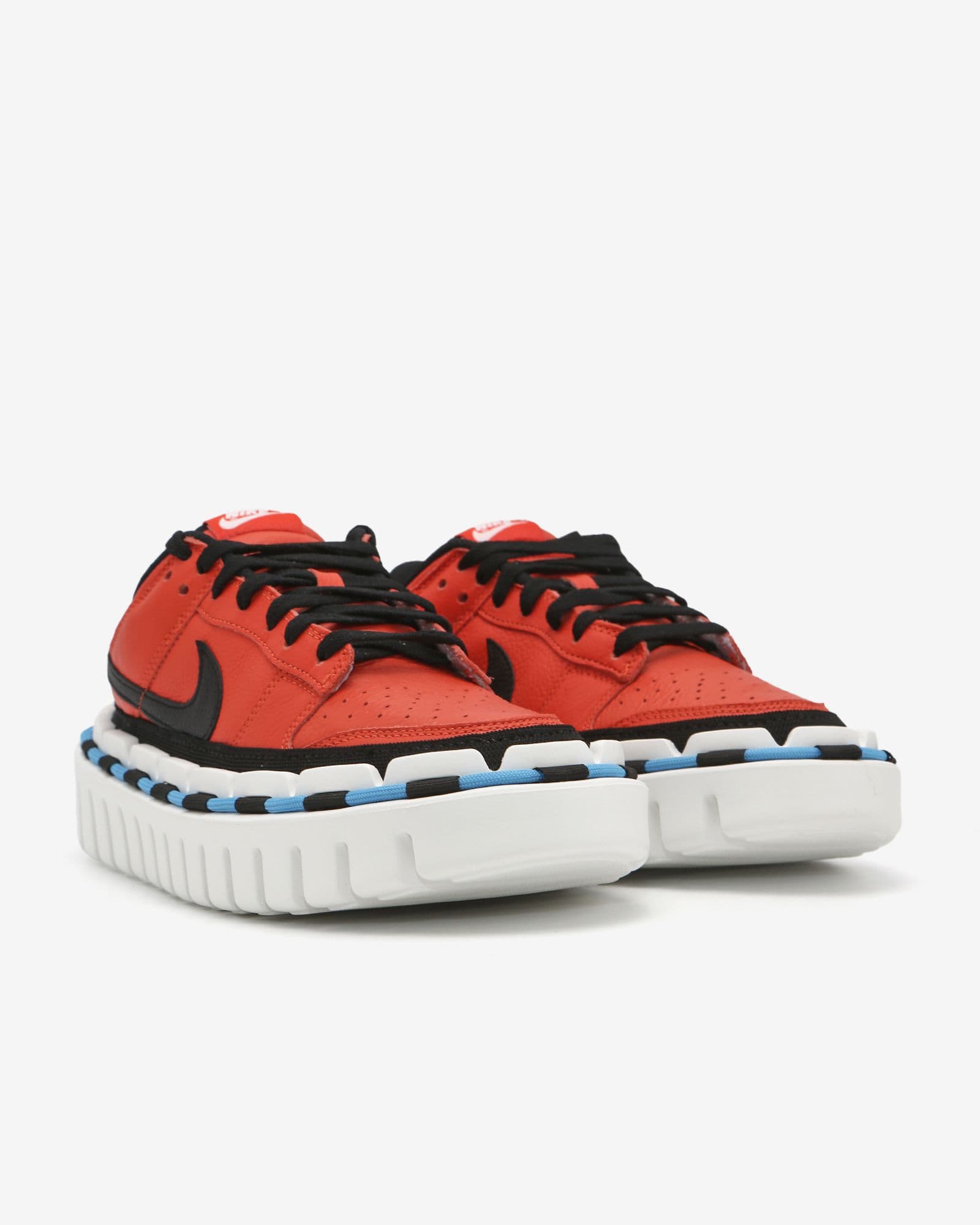 DUNK "HOLLAND" KHOLAB 1/1 Handcrafted KHOLAB Size: 8 · Premium Leather Upper · Signature KHOLA Sole (White) · Signature KHOLA Cord (Blue) Color: Orange/Black/White/Blue Upper: Split Suede Sole: EVA Assembled in Los Angeles