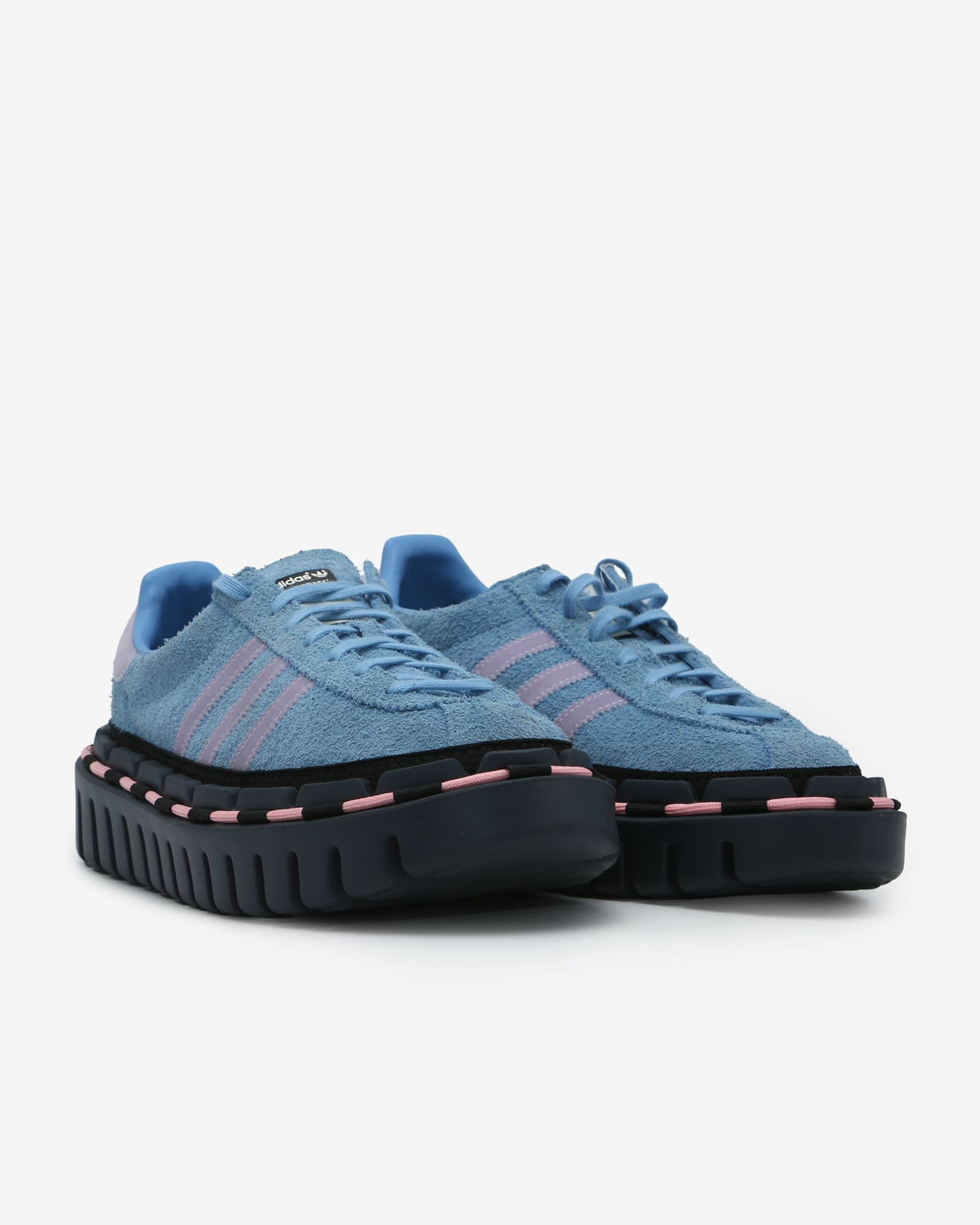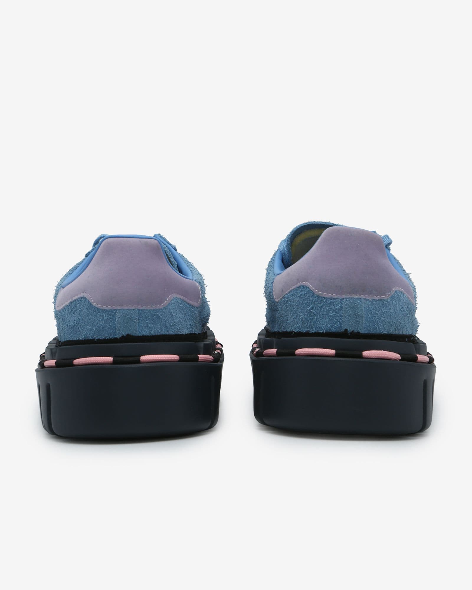 Gazelle Blue Grass KHOLAB 1/1 Handcrafted KHOLAB Size: 11 · Suede upper · Leather Lining · Signature KHOLA Sole (Blue) · Signature KHOLA Cord (Pink) Color: Blue/Pink Upper: Suede/Leather Sole: EVA Assembled in Los Angeles