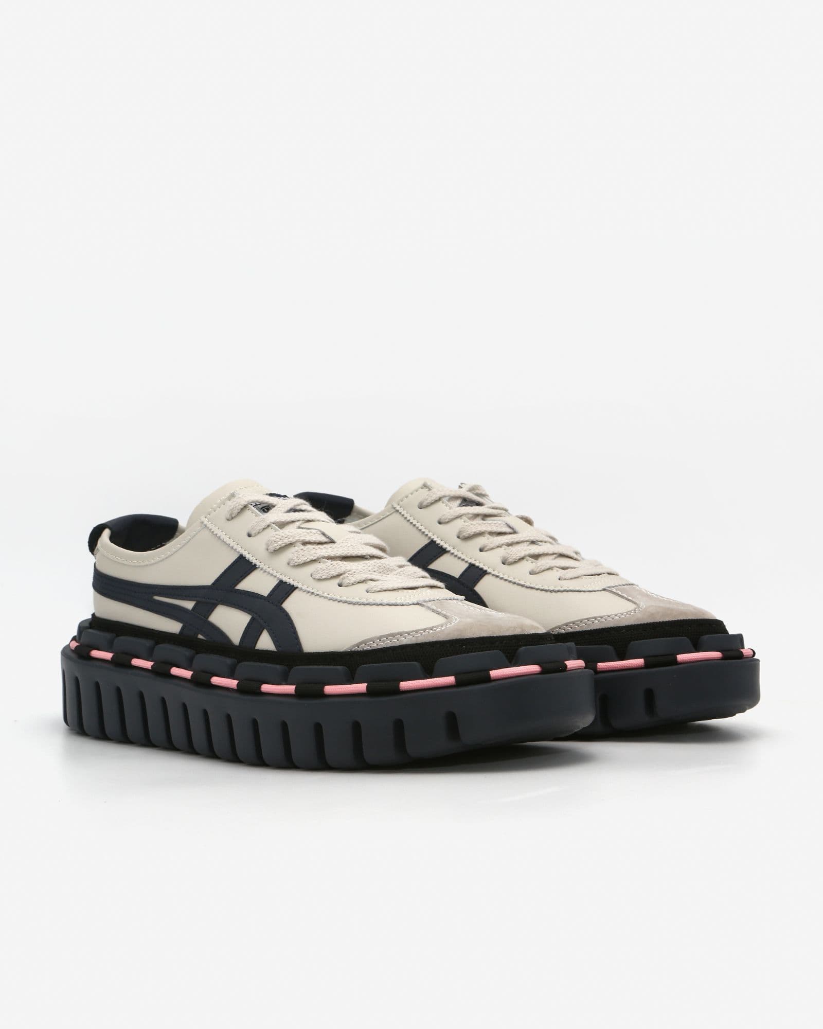 Onitsuka Tiger 66 KHOLAB 1/1 Handcrafted KHOLAB Size: 11 90/100 Condition · Leather Upper · Suede Toebox & Heel Detail · Signature KHOLA Sole (Blue) · Signature KHOLA Cord (Pink) Color: Blue/Pink Upper: Leather // Sole: EVA Assembled in Los Angeles