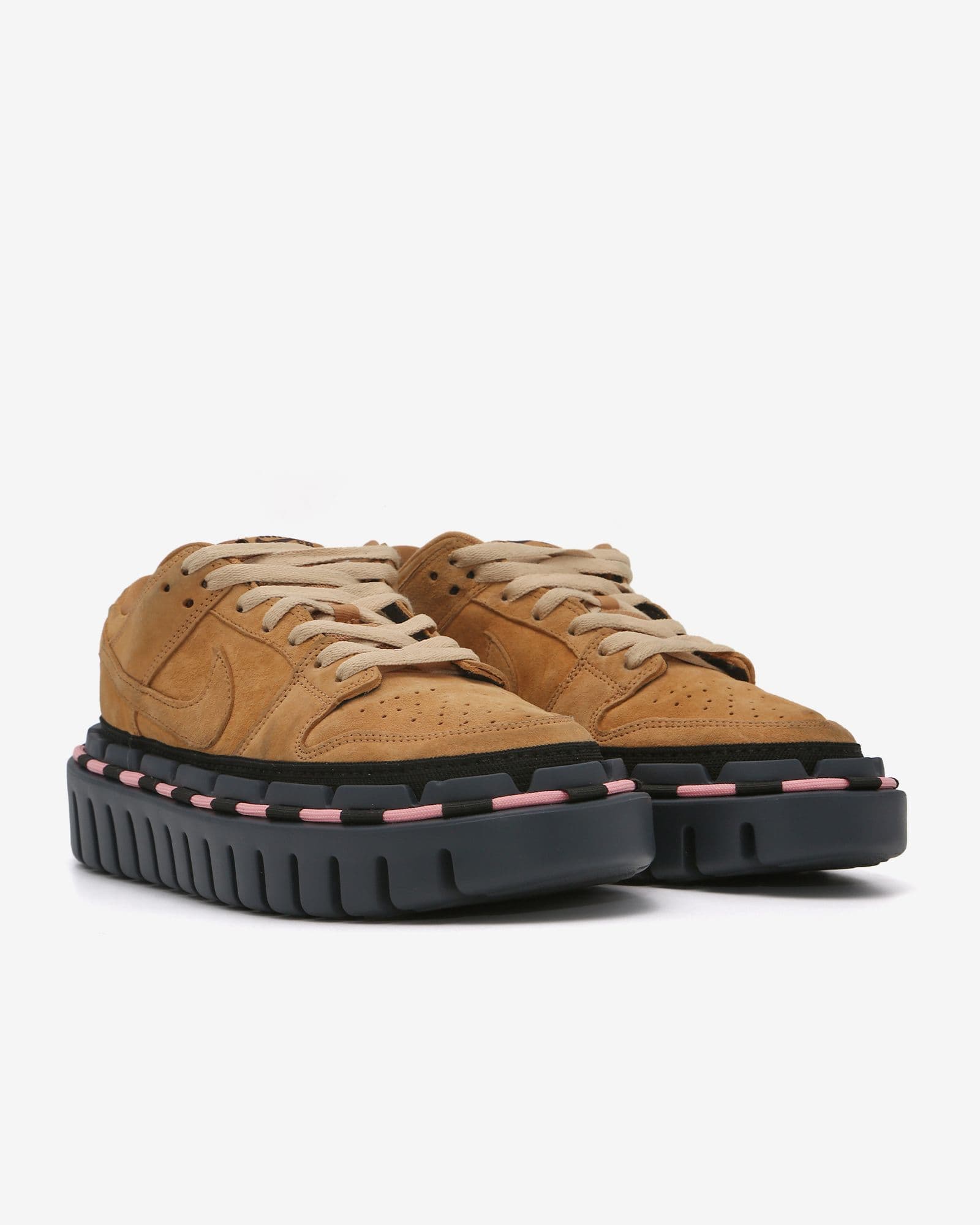 DUNK "WHEAT" KHOLAB 1/1 Handcrafted KHOLAB Size: 10 · Premium Suede Upper · Signature KHOLA Sole (Blue) · Signature KHOLA Cord (Pink) Color: Beige/Pink/Blue Upper: Split Suede Sole: EVA Assembled in Los Angeles