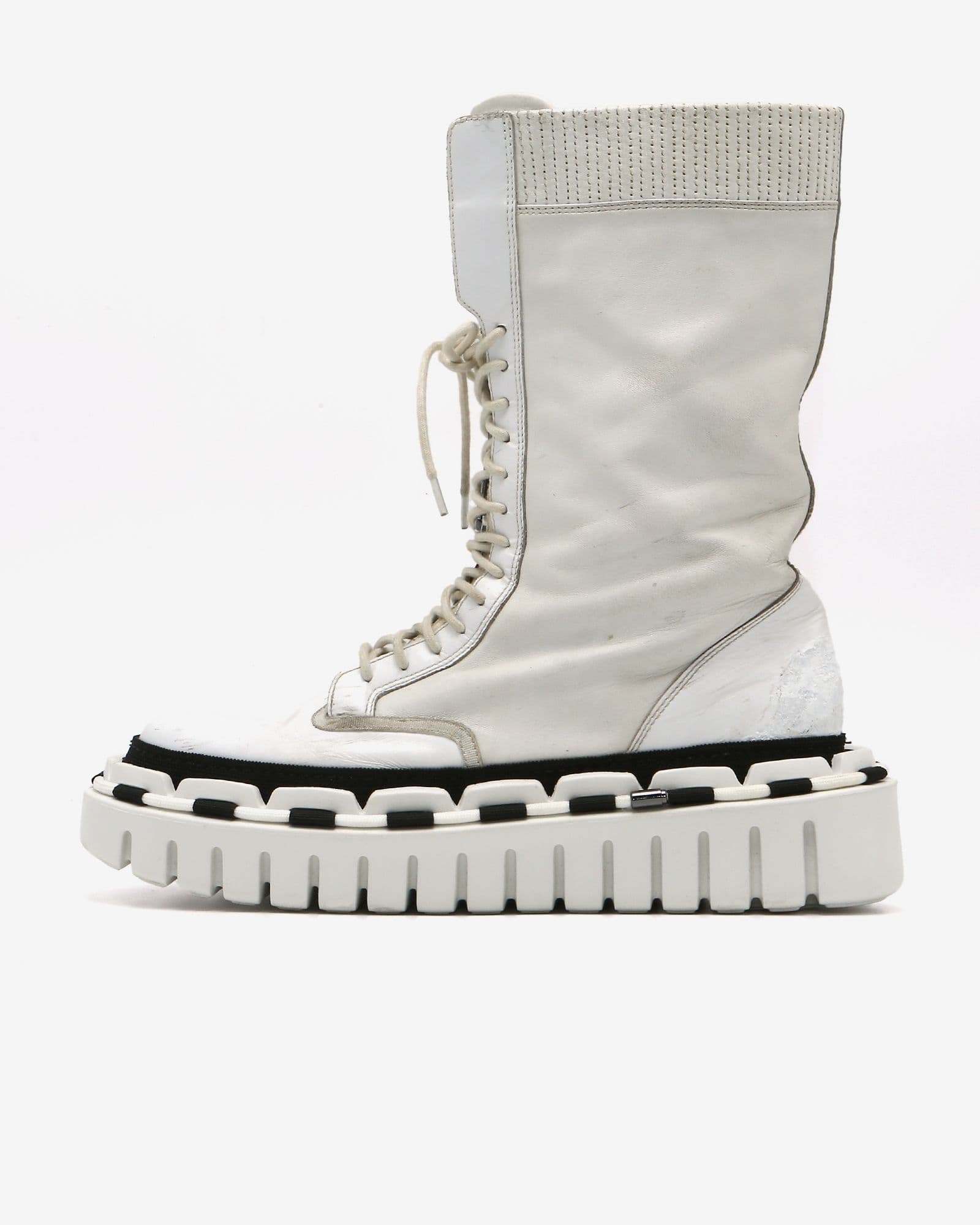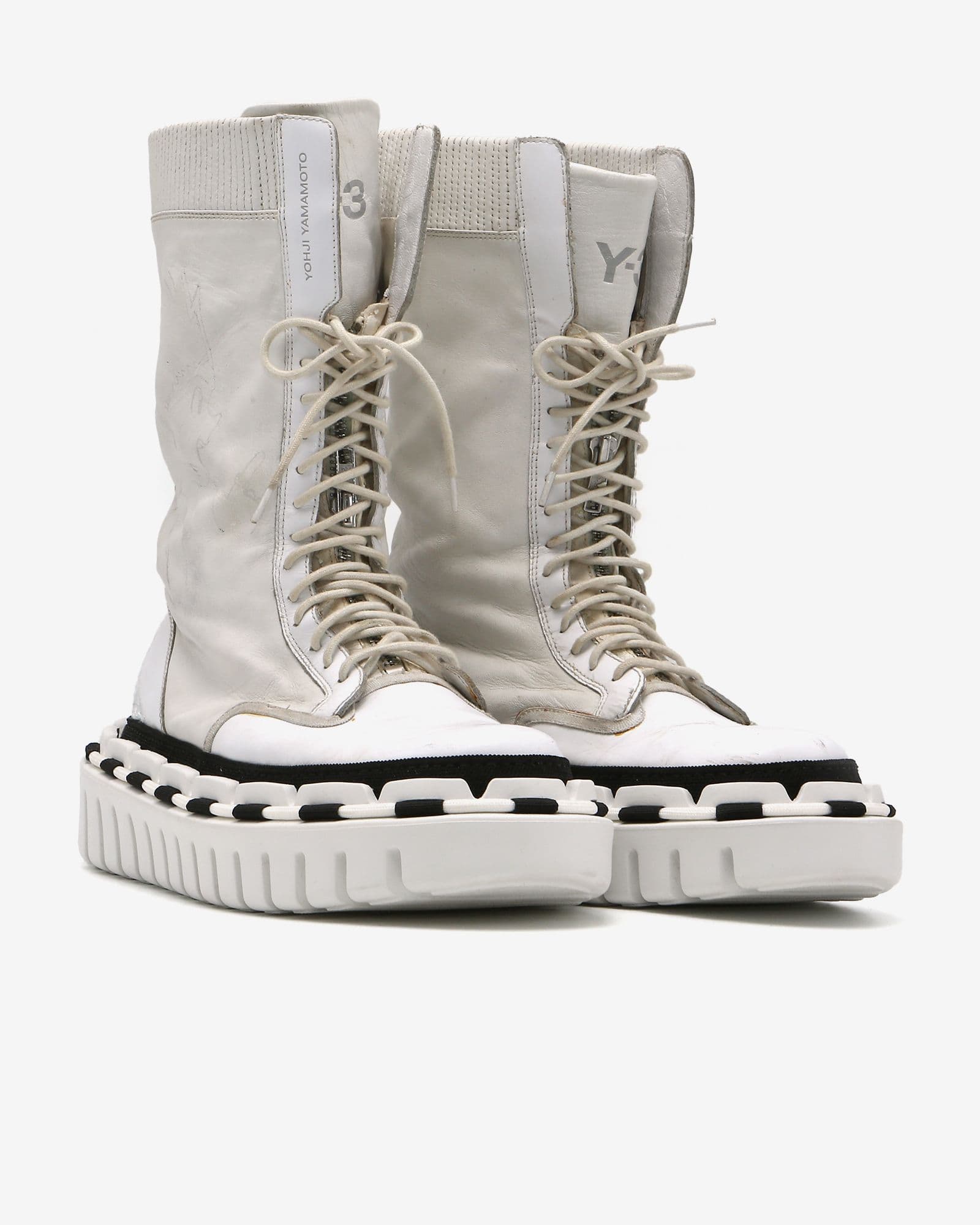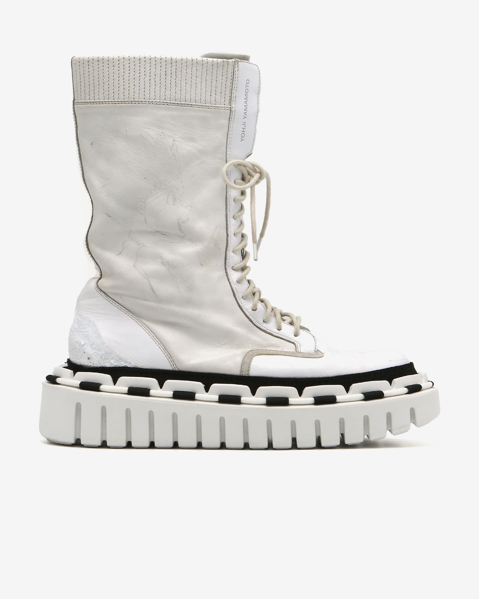 Y3 BOXING BOOTS KHOLA BY DESERTED IN URBAN 1/1 Handcrafted KHOLAB Size: 8 · Premium Leather Upper · Pleated Leather Ribbing · Signature KHOLA Sole (White) · Signature KHOLA Cord (White) Color: White Upper: Full Grain Leather Sole: EVA Assembled in Los Angeles Upper condition: 8/10